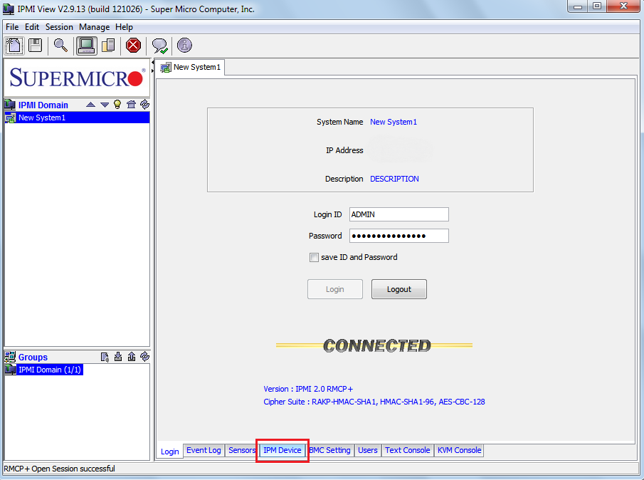 Запустите программу «IPMIView» и перейдите на вкладку IPMI Device (внизу экрана) (см. рисунок 1):