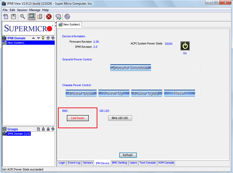 Там вы увидите кнопку Cold Reset (см. рисунок 2). Нажмите её и, тем самым, Вы произведёте перезагрузку платы IPMI.
