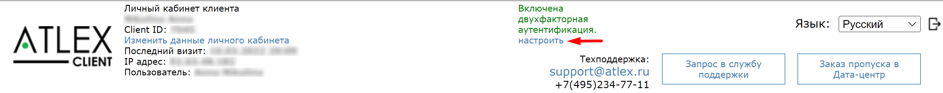 Обращаем ваше внимание, что 2ФА необходимо включать для каждого клиентского кабинета отдельно.