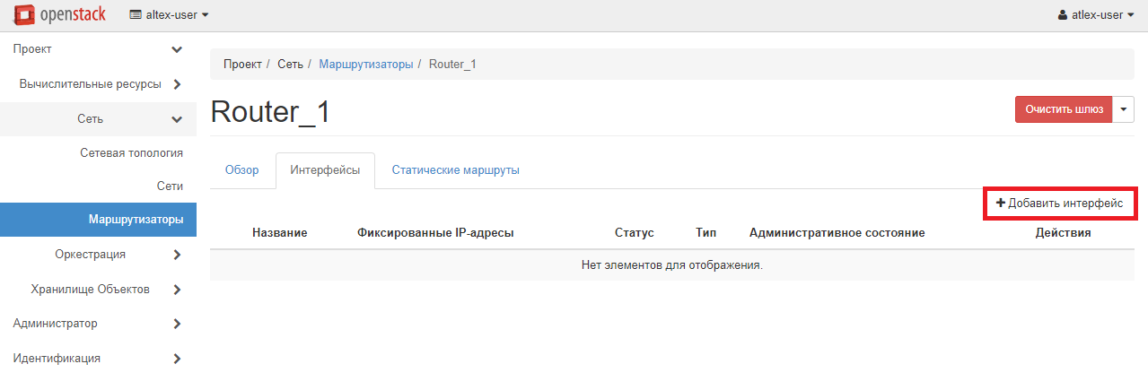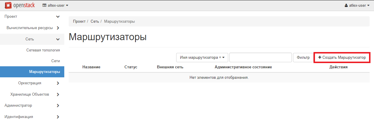 Следующим шагом необходимо создать маршрутизатор для работы вашей сети. Для этого перейдите в раздел «Проект» - «Сеть» - «Маршрутизаторы» и нажмите «Создать маршрутизатор».