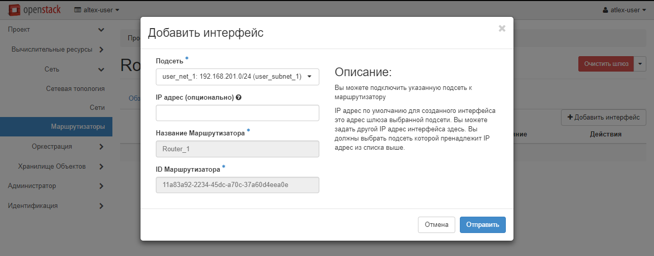 В выпадающем списке «Подсеть» выберите созданную ранее сеть и, при необходимости, укажите IP-адрес из созданного диапазона, после чего нажмите «Отправить».